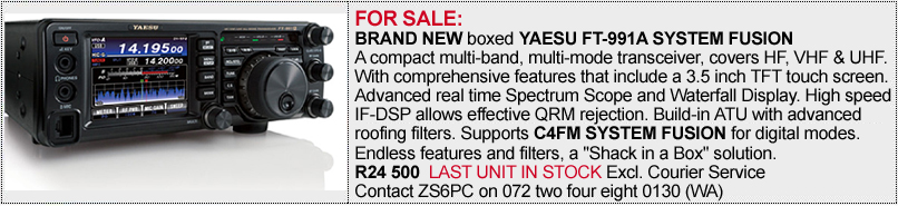 Trading hams - with no personal website - when advertising imports or NOS with South African pricing, are to avoid the commercial spreads of that equipment and instead furnish main specifications, an indicative photo plus a link to the equipment site if available. Second hand items should be photographed in their current state and described as usual.